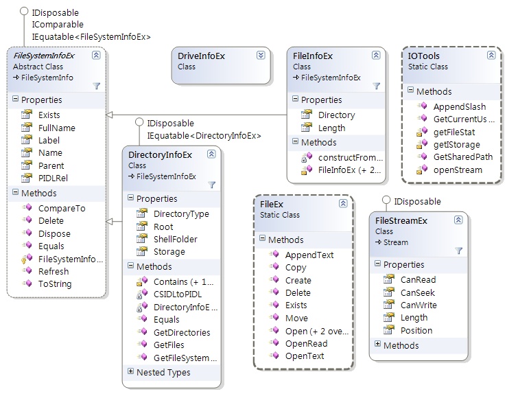 DirectoryInfoEx is a C# components (.Net 2.0) which uses IShellFolder to list special / virtual directories, it's interface is similar to System.IO.DirectoryInfo.