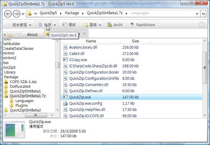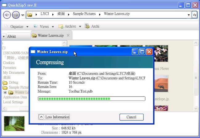 QuickZip 5 allow you to perform powerful archive operations over a wide range of archive types using a familiar explorer like interface.